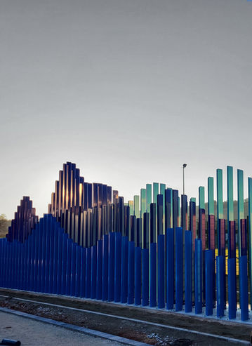 Für das neue Viteliusbad in Wittlich möchten wir das Phänomen der Welle künstlerisch konservieren und die Besucher entlang der Magistrale in den kommunalen Wassertempel begleiten. Das Spiel mit der Perspektive, mit Verdichtung und Auflösung soll die Menschen faszinieren und jedes Mal aufs Neue neugierig machen. Ein Glitzern und ein Flirren der einzelnen Lamellen bilden einen amorphen oszillierenden Körper.